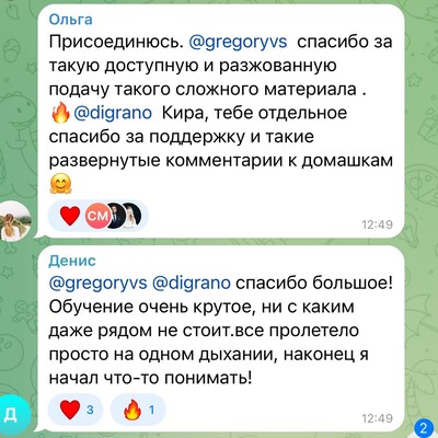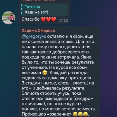 Обратная связь от Григория