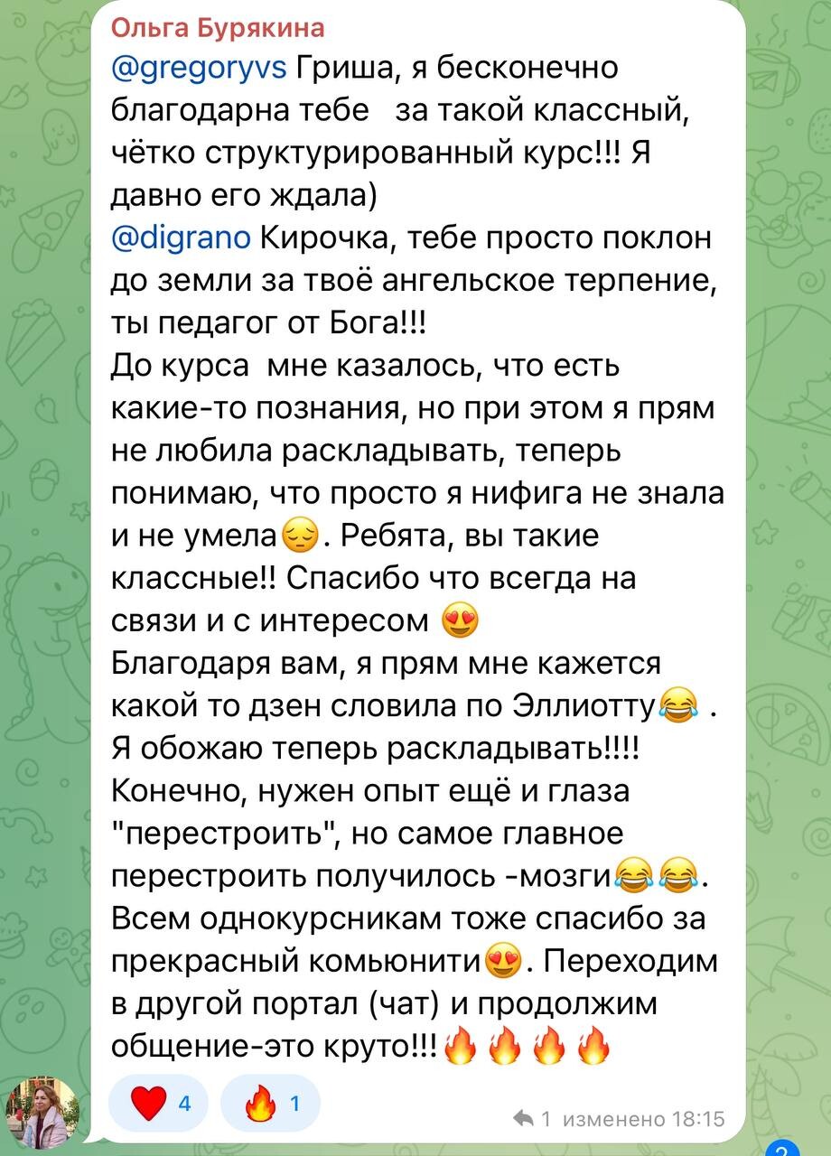 Здесь не будет «воды» или абстрактных теорий — только конкретные инструменты, которые Григорий отточил за годы практики. Вы научитесь видеть рынок глазами "умных денег" и торговать с их преимуществом.